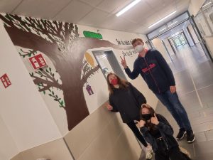 Im Rahmen eines Kunstprojektes planen und erstellen SchülerInnen der 9f zusammen mit der Kunstlehrerin Frau Müller eine Wandmalerei.