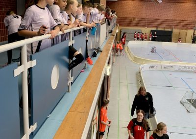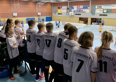 Um 11:00 begann das Turnier der drei Wettkampfklassen in der Sporthalle des Vincent-Lübeck Gymnasiums, welches am Ende für die besten zwei Teams jeder Wettkampfklasse das Sprungbrett zum Bundesfinale in Berlin ist. Das erste Spiel konnte die OBS Jesteburg mit einer überzeugenden Teamleistung gegen die AvH Schule Wittmund mit 2:1 gewinnen. Die Mannschaft ging souverän mit 2:0 in Führung und konnte diese auch bis zum Ende der 12 min. Spielzeit behaupten. Die Stimmung nach dem ersten Sieg auf Landesebene war ausgelassen. „Wir können es nach Berlin schaffen“, berichtete Ben Steindamm nach dem Sieg voller Freude. Allerdings sollte der erste Dämpfer nicht lange auf sich warten lassen. Das nächste Spiel lief wieder wie geplant, frühe 1:0 Führung. Doch dann konnte die OBS-Jesteburg um Trainer Alexander Vogt die Führung nicht ausbauen. Die ISHR schoss den 1:1 Ausgleich und konnte die Verunsicherung der OBS nutzen, um zwei weitere schnelle Tore zu erzielen. Die erste Niederlage war somit besiegelt und traurige, ratlose Gesichter verließen das Spielfeld. In der ansprechenden Besprechung musste Trainer Vogt Aufbauarbeit leisten. „Es waren drei kleine Fehler im Spiel und auf diesem Niveau werden sie einfach eiskalt bestraft“, so Vogt. „Es ist noch alles drin, wir haben noch drei Spiele vor uns und es ist unser erstes Jahr hier im Landesfinale. Also, Kopf hoch und weiter geht’s. Wir denken jetzt nur noch an das nächste Spiel und geben unser Bestes! Am Ende schauen wir, ob es reicht oder nicht!“, so Vogt weiter.
