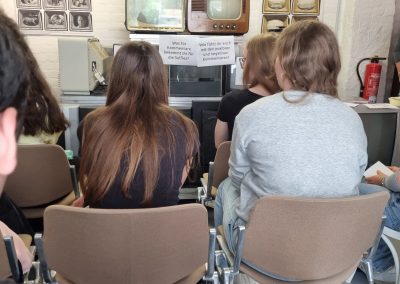 An diesem wunderbaren Ort des Filmmuseums Bendestorf bekamen die Schüler:innen der Klasse 9d die Gelegenheit, die vielen Fragen des Wieso – Weshalb – Warum zu bearbeiten und das Wie mit den filmischen Möglichkeiten des Museums umzusetzen.